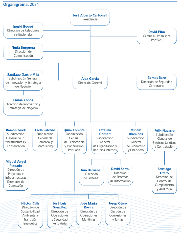 A 31 de diciembre de 2024 la composición del Consejo de Administración de la Autoridad Portuaria, el máximo órgano de gobierno del Port de Barcelona, era la siguiente: