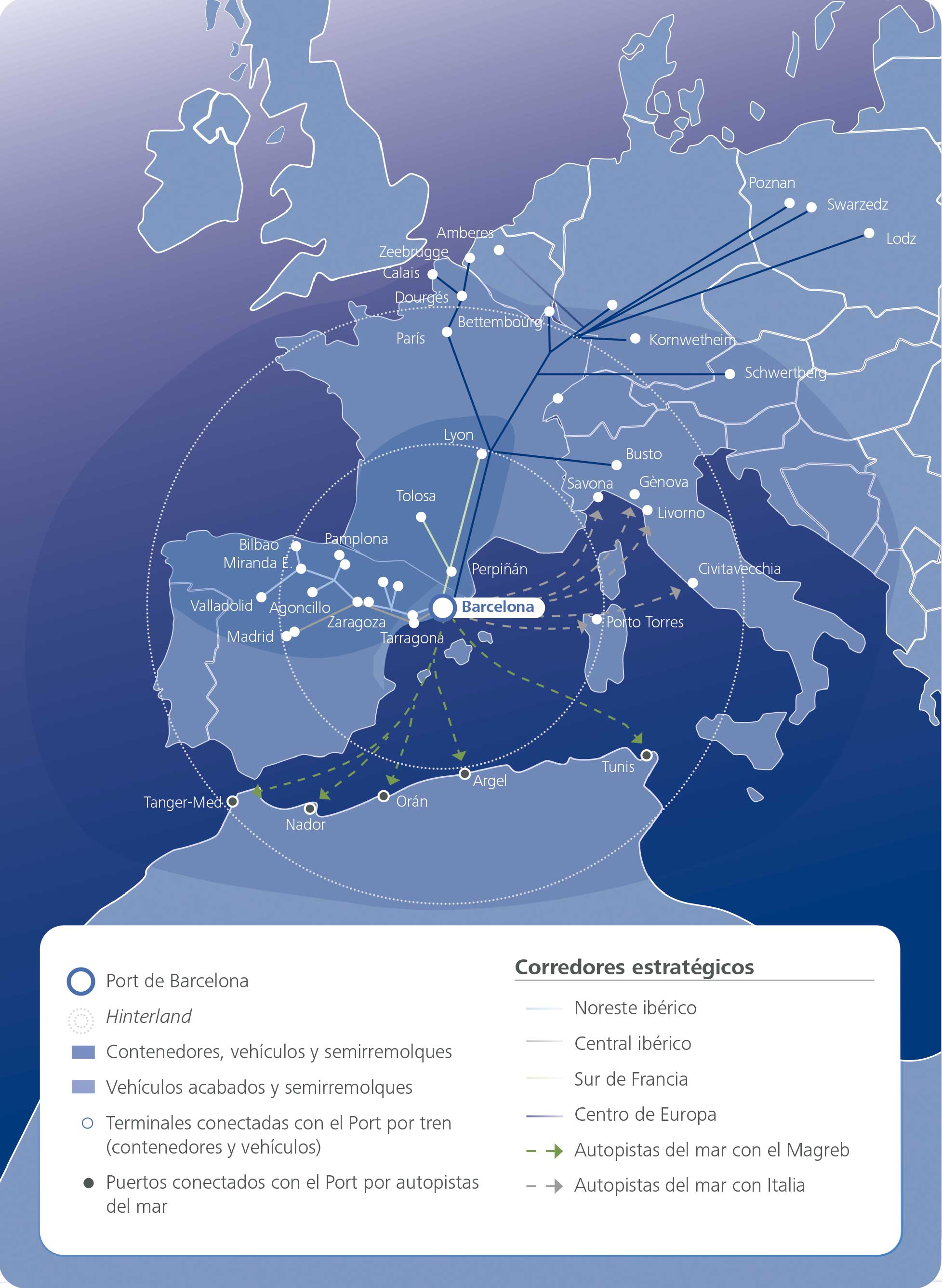 El Port de Barcelona es la principal infraestructura de transporte y servicios de Catalunya y un puerto de referencia de la región euromediterránea. Dispone de espacios, equipamientos y servicios especializados para cada sector y la zona logística más grande de su ámbito geográfico. Además, es una potente herramienta de desarrollo social y económico.
